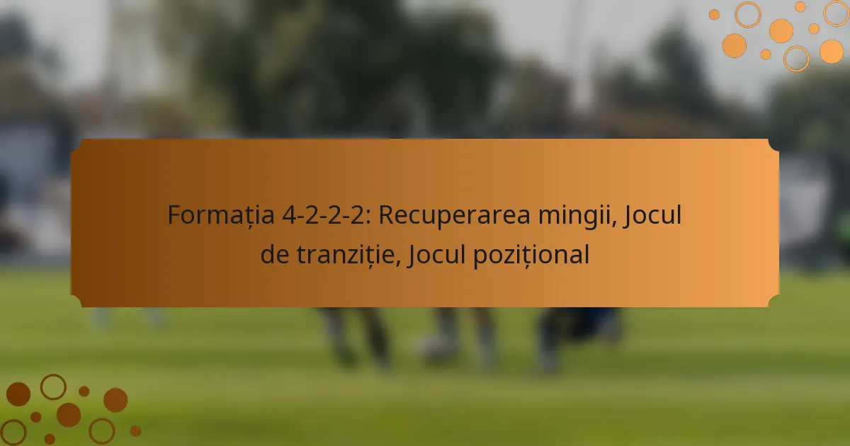 Formația 4-2-2-2 este un aranjament strategic în fotbal care combină soliditatea defensivă cu versatilitatea atacului, având patru fundași, doi mijlocași centrali, doi mijlocași ofensive și doi atacanți. Pentru a valorifica pe deplin această formație, exercițiile tactice sunt esențiale pentru îmbunătățirea poziționării jucătorilor și promovarea coeziunii echipei, îmbunătățind în cele din urmă performanța generală. Deși oferă o abordare echilibrată în controlul mijlocului și oportunitățile ofensive, echipele trebuie să fie conștiente și de vulnerabilitățile sale defensive pentru a-și optimiza jocul.