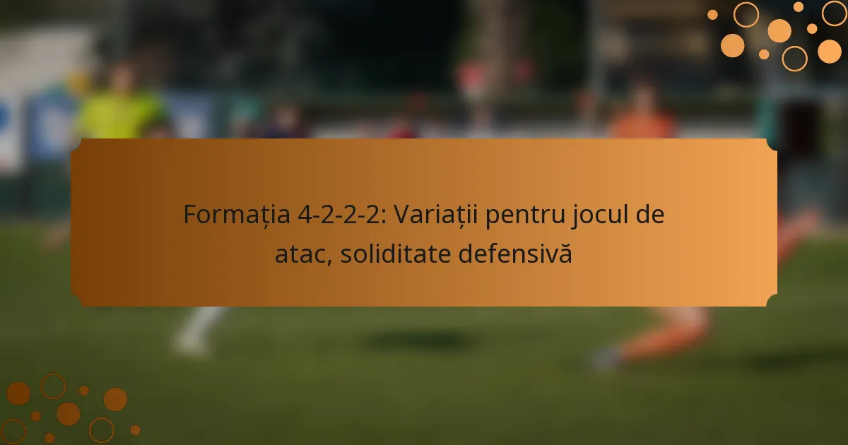 Formația 4-2-2-2: Variații pentru jocul de atac, soliditate defensivă